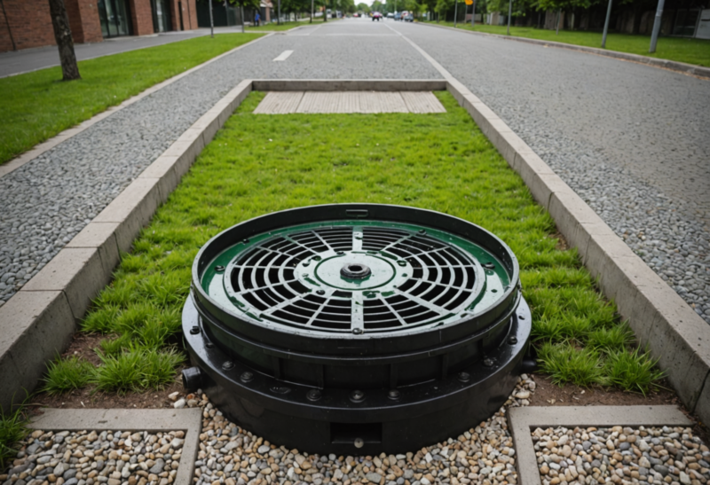 • Фильтрационные колодцы: оснащены фильтрами для задержки твердых частиц и песка, уменьшая риски засорения дренажных труб.